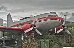 • 🌍 McDonald's, 48 Roberts St (cnr Ruapehu St), +64 6 378 8679. 24 hours. The only McDonald's in the world on an airplane! When the Golden Arches bought the site in 1990, it came with a decommissioned Douglas DC-3, and they incorporated it into the restaurant. The plane, complete with original cockpit, seats 20 diners and is open daily 9AM-4:30PM. OSM directions target=_blank