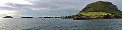 Tauranga sits at the head of a large harbour that extends along the western Bay of Plenty, with Matakana Island sheltering the harbour from the ocean. The volcanic cone and town of Mount Maunganui stand at the entrance to the harbour, 5 km north of Tauranga. "The Mount", as it is known, is a suburb of Tauranga, although it is often regarded as a satellite town. It is one of the major resort cities in New Zealand, famous for its beautiful beaches and surfing.