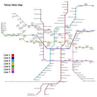 There are seven lines but the two most useful are lines 1 (north to south- from Tajrish Station to Haram-e-Motahar Station) and 2 (east to west) which connect at the central Imam Khomeini station. All stations have signs in Persian and English. Trains run every 10 minutes or less on rush hours (15 minutes on Fridays and holidays) from around 05:30 to 23:00 every day.