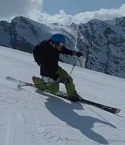 Telemark skiing is a downhill snowsport. In contrast to alpine skiing, the bindings only fasten the boots at the toe, leaving the heels free, much like cross-country ski bindings.