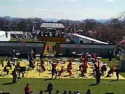 - Ningen Shogi (人間将棋), literally "human shogi", is held annually as part of Tendo's cherry blossom festival, on a Saturday and Sunday near the end of April on Mt. Maizuru. Warriors in full armor and kimono-clad maidens move between spaces at the command of their warlords/players, while the audience watches from the nearby hillside.