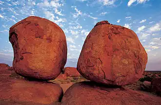 - Devils Marbles Conservation Reserve Beautiful natural granite boulders 100 km to the south.