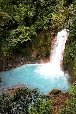 - 🌍 Río Celeste (Tenorio Volcano National Park), Bijagua (Two hours away from La Fortuna in Guanacaste province.). A turquoise blue river, whose colour results of mineral deposits in one stream mixing with the sulphurous water in another. There are plenty of birds and insects to see, including toucans. Do carry a rain-jacket with you and proper boots—the trail often is muddy. However, if money is no concern, they also rent rubber boot near the entrance. The trail takes about 1 hr one way. The visit of the park is only really worth it with sunshine (for the water to glow) and during the dry season. The water does not glow by itself, it is a beautiful reflection the light, like with water coming from a glacier. Note, during the dry season a day's rain is not an issue—the tropical soil stores a lot of water before it releases it. US$12.