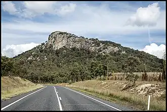 - 🌍 Bluff Rock Viewpoint, New England Highway (southbound), Bungulla (12 km south of Tenterfield via New England Highway). A rest area with views of Bluff Rock. A monument commemorates the Aboriginal people killed in a massacre by European settlers in 1844 - more information is here. A closer viewpoint is at the turn-off to Bluff Creek Road, 1 km south on the right hand side - be mindful of the highway traffic. No access to the summit of Bluff Rock.