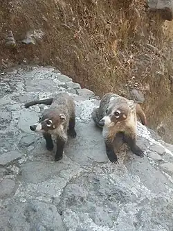 There is an archaeological site at the top of an easy-hikeable mountain (assuming you are in decent shape -- there are 400 m of stairs) that is also famous for its "good vibrations". The hike can take up to 2 hours depending on your fitness level. The pyramid, El Tepozteco, offers wonderful views of the surrounding area. The site may be reached by walking down Avenida 5 de mayo (in the direction away from where you entered the town). Continue until the street ends to the steps which mark the beginning of the trail. Make sure to bring water with you. The hike to the top is free but it will cost M$37 (in 2010) to access the pyramid. At the top you will also encounter coati, also known as a tejón. These animals, members of the raccoon family, are curious and will attempt to open backpacks to find food.