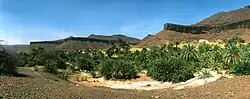 Terjit is 45 km (28 mi) south of Atar and popular with tourists in Mauritania. It nestles in a gorge on the western edge of the Adrar Plateau with the palm grove stretching a few hundred metres alongside a stream that emerges from a spring. Historically, it has been used for religious ceremonies, especially wedding ceremonies, as well as the coronation of a few African princes.