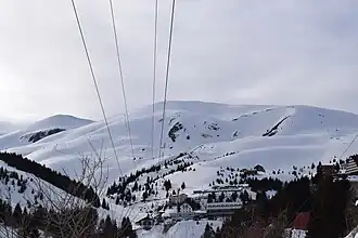 - Ski at 🌍 Popova Šapka (Попова Шапка) (W 18 km). A peak of the Šar Mountains rising 1,780 m (5,840 ft) and a ski resort surrounding the peak, west of Tetovo. It is North Macedonia's most popular ski resort with several hotels and restaurants. Various ski trails are good for beginners and experts. It is basically a ghost town outside of ski season. Since 1947, the Šar Mountain Cup ski tournament has been held here annually. A cable car running from Tetovo to the ski resort, damaged in the 2001 conflict, was restored in 2020.