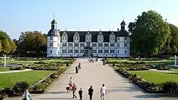 Like other parts of Germany, this region was long divided into a large number of tiny territories, each ruled by an earl, baron or bishop. This has resulted in a rich heritage of castles, palaces and manors from different eras and in various styles. Most of them were constructed during the High Middle Ages and are well-fortified but were later transformed into more comfortable Renaissance-style residences (the local variant of Renaissance architecture is called "Weser Renaissance"). Among the most beautiful and interesting of them are Schloss Neuhaus of Paderborn (surrounded by a beautiful baroque garden), the former Princely Residence in Detmold and Burg Blomberg (17 km east of Detmold). The Wewelsburg near Büren (16 km south of Paderborn) is a triangular-shaped, early 17th-century Renaissance castle built for the prince-bishops of Paderborn, which was chosen as an SS cult-site during the Nazi era and redesigned after Heinrich Himmler's fancy.