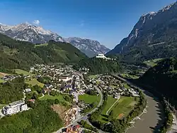 The Do-Re-Mi Meadow is visible at top left, below the snowy peaks - 🌍 Hohenwerfen Castle (Do-Re-Mi Meadow). This castle is most famous in movie history for its role as Schloss Adler, the Nazi stronghold broken in by Richard Burton and Clint Eastwood in the 1968 war classic Where Eagles Dare. Here, it is the backdrop for the beginning of the "Do Re Mi" scene. A marked hiking trail starts at the Werfen village's Tourist Office and goes through some cleverly designed trail markers until the filming spot. However, as of July 2024, the trail's upper section has been reported as closed for maintenance.