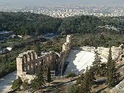 - 🌍 Odeon of Herodes Atticus, Athens, Dionysiou Areopagitou. Locally known as the Herodeon, the huge amphitheatre was built near the Athens Acropolis around 160 AD. It was restored between the late 19th and mid 20th centuries. It hosts musical and dramatic performances and is home to the Greek National Opera. They have a website with more info, but it's Greek to me!
