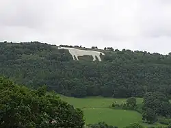 - π Kilburn White Horse is cut into the scarp and best viewed from below along Low Town Bank Road. It was created in 1857 by stripping off the topsoil then covering the sandstone bedrock with limestone chips.