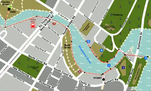 Just past Empress Place is a statue of Sir Stamford Raffles (5), the iconic founder of Singapore. Go on, join the other tourists and have your picture taken in front of it with the CBD skyscrapers as the backdrop, that's what it's there for.