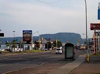 Mount McKay looms on the horizon, as seen in this view from Memorial Avenue in Intercity.