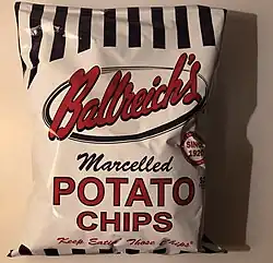 - Ballreich's Potato Chips, toll-free: +1-800-323-CHIP (2447). The original "marcelled" or ridged chips. The potato chip factory is located in Tiffin. The chips can be bought at any local grocery store or supermarket, where potato chips are sold. They also make nice pretzels.