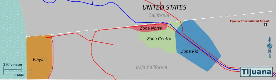 Tijuana is a city in Baja California, Mexico, just across the border from San Diego, California, USA. The city has grown from a small border town with a salacious reputation during the Prohibition Era in the United States into a large, modern city with a sizable middle class. Its proximity to the United States has made it a very popular tourist destination, especially for day-trippers from San Diego. Though still often considered an "edgy" city by Mexicans and foreigners alike, Tijuana has been undergoing a cultural revival, with thriving arts and culinary scenes revealed to those willing to peek beyond its rough veneer.