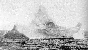 The iceberg was photographed and sketched as it lay in the offing, bearing a red paint scrape big enough to convince any insurance assessor. It wasn't seen again after the search vessels dispersed. Given its size and position, and warming of spring, it might have lasted another 3 weeks, dwindling to bergy-bits, growler and brash then dissolving into the Atlantic. The summer sun warmed the surface waters, sending them up as fog banks and clouds to go every which way. Some portion must have fallen back onto Greenland as snow, which a century later is compacted into ice and beginning its 3000-year progress towards the coast. Or maybe sooner? There is concern that the Greenland ice cap is not just dwindling but de-stabilising; this would cause a huge and rapid rise in sea levels to engulf the most densely populated and productive regions of the planet. So if the iceberg comes back at us in this guise, only a privileged minority will find room in the lifeboats.