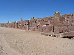 Tiwanaku is a Pre-Columbian archaeological site near Lake Titicaca, one of the largest sites in South America actually. Surface remains cover around 4 km² and include decorated ceramics, monumental structures, and megalithic blocks.
