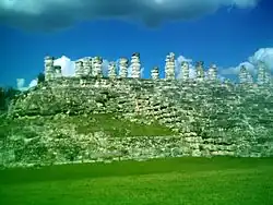- 🌍 Aké (Ake Archaeological Zone), Carr. Tixkokob-Sotuta (drive southeast on Calle 2 (Tixkokob - Sotuta) for 10 km). 09:00 - 17:00. Ruins of a small Maya city that dates from about 250 AD. It was likely a vassal state, paying tribute to Izamal. A sacbe (Mayan elevated and paved roadway) leaves Ake going direct to Izamal. The most unusual feature of the Ake site is The Palace (identified on the site map as Structure 1). This is a large structure with steps leading to an elevated platform where rows of stone columns rise up from the floor. Presumably, these columns once supported a roof, but no trace of it remains. The columns give the structure the nickname "Pillars Building". The columns are covered in relief sculptures that depict Mayan life and ceremonies. Another interesting feature is the Pyramid. Both of these major structures date from the period between 250 AD and 500 AD. The site is administered and maintained by INAH (the federal agency for archaeology and history). During the 19th century, the lands around the ruins were operated as a henequin hacienda. There is also a cenote at the site. Mayan farmers occupy land near the archaeological site and they operate a stand near the entrance selling honey and related products. The honey is made using a unique, endangered species of small, stinger-less bee that have been kept by the Maya for millenia. M$80.