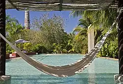 - 🌍 Juan de Dios Pool Hammock Factory, Calle 27 entre 16 y 18, Espalda de la Concha, ☏ +52 991 106 7373. "Factory" may be a bit of a delusion of grandeur since Don Juan Pool and his family make hammocks in their home-based workshop. Learn how hammocks are made, the weaving pattersn, materials, and cultural heritage behind them. Many colors and unusual designs are available. Different sizes, from small chair-style hammocks to large "matrimonial" hammocks that sleep two.