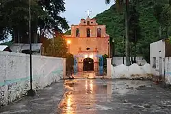 - 16th century chapels - While the Augustinians were building their monastery, they were also embarking on a mission of evangelizing the native indigenous populations, and they would seek out the native temples, knock them down, and build Christian temples on their sites. There were originally 26 of these chapels in Tlayacapan, but 18 remain and have been restored and maintained. There were 3 classes of chapels, with the main chapels generally being elaborately decorated and serving a wide community, while other chapels served local neighborhoods or clusters of families and were more humble structures. The four main chapels are Capilla El Rosario, Capilla Santa Ana, Capilla de la Exaltación, and Capilla Señor Santiago