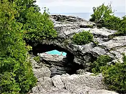 - π Cyprus Lake Campground, 469 Cyprus Lake Road (about 10 minutes by car from Tobermory). Offers trails to the shores of Georgian Bay. The campsites can be booked online. Reservations are a great idea on long weekends, and the campground can get pretty crowded. But this campground offers an easy walk to points of interest such as the Grotto, a rock cavern on the shores of Georgian Bay.