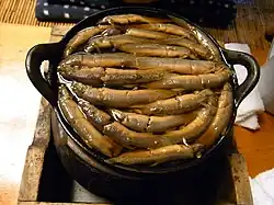 - 🌍 Komagata Dozeu (駒形どぜう), 1-7-12 Asakusa. Another local institution, Komagata has been serving up loach hotpot (dojō nabe) for over 200 years. Small, bony and slimy, loach was the working man's alternative to eel, then as now an expensive luxury. It's a bit of an acquired taste -- "tofu with bones" is a common description -- but it's very Asakusa and you can ladle on green onion and shichimi spice to add some flavor. Tatami seating downstairs, tables upstairs. From ¥2000.