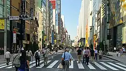 The Ginza (銀座) district of Tokyo, literally "Silver Mint", is in the Chuo ward. It is considered the high fashion center of the city and contains many upscale shops and restaurants.