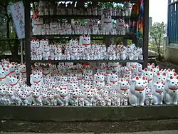 • 🌍 Gotokuji Temple (豪徳寺 Gōtokuji), Gōtokuji 2 chome 24-7 (take the Odakyu line to Gotokuji Station or the Setagaya line to Miyanosaka Station). The origin of the maneki-neko or beckoning-cat statuettes that bring good fortune to Japanese merchants the world over. OSM directions target=_blank