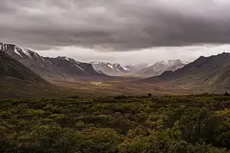 The next closest settlement to the park is Eagle Plains, 254 km (158 mi) to the north of the East Blackstone River bridge, also via the Dempster. The Dempster continues northeast into the Northwest Territories, passing Inuvik and Tuktoyaktuk. If you're doing a multi-day drive along the Dempster all the way up to the Arctic Ocean, consider stopping by Tombstone TP.
