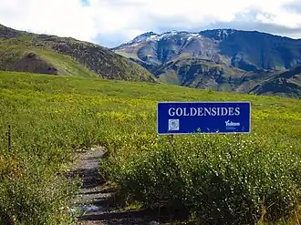 Goldensides Mountain Trail (coloured on map) is a 5-km (return) medium-difficulty trail towards 🌍 Goldensides Mountain, though the trail ends just at the base of the mountain. The slopes up towards the base are relatively gentle and the elevation gain is only 215 m (705 ft).