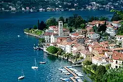 Torno, is a town in Lombardy, on the Italian-Swiss border. It sits at the southern end of Lake Como.Torno with its 1250 inhabitants slopes gently down along its headland that juts into the Lake of Como, some 7 kilometers (4,5 miles) from Como along the provincial road leading to Bellagio. Whether arriving by lake or by road one is struck by the intricate beauty of the township's ancient buildings and dwellings as they climb from the lakeshore culminating in the upper tightly-knit part of the village (il Borgo), and it's satellite agglomerations of Rasina, Piazzaga and Montepiatto further up and along the hillside.