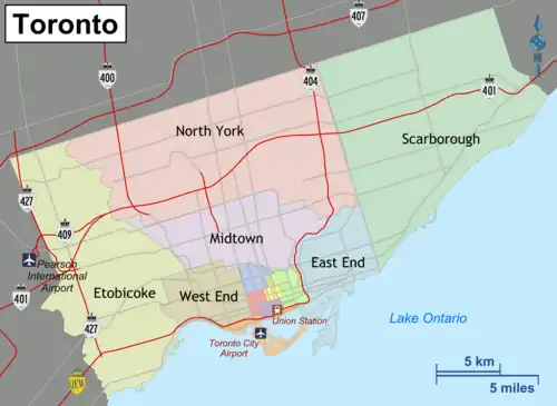 In 1998, the cities of Toronto, Scarborough, North York, Etobicoke, and York and the Borough of East York amalgamated to form the current City of Toronto.