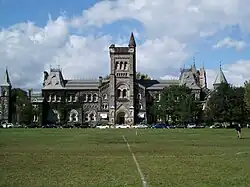 - Toronto Metropolitan University (TMU – formerly Ryerson University). In the heart of the downtown core. It was once a polytechnic, but is now Toronto's third university. The university is particularly well known for its school of management, and for its journalism program. Its campus is centred on the Kerr Hall, which forms a square around a central quad, it fills the block bounded by Gould, Gerrard, Victoria and Church streets. TMU also has buildings throughout this section of the city, including the Ted Rogers School of Management, at Bay and Dundas streets.