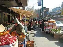 Shopping in Kensington Market is centred along Augusta, Baldwin and Kensington as well as all along College Street. Many of the shops on Augusta tend to cater to a largely working-class clientele, with multiple shops selling tough, cheap clothing. Baldwin is focused mainly on food, with some of the finest butchers, grocers, bakers and fishmongers in the city. Kensington contains a jumble of Victorian row-houses housing second-hand clothing shops. College Street is packed with discount computer shops, particularly the closer you are to the university; further towards Bathurst Street, College becomes a centre of Latin-American restaurants and shops.