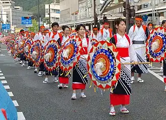 - Shan-Shan Festival (しゃんしゃん祭). Mid-August. More than 4,000 people participate in the parades of the "Inaba Umbrella Dance", using ornate umbrellas covered in bells and colorful strips of paper. Snap a photo of the over-sized one hanging year-round in the train station, as it is a symbol of this area.