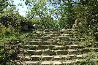 - 🌍 Shikano Castle Ruins (鹿野城, shikano-jō), 1517 Shikano-cho, Shikano (1 hour 15 minutes and ¥800 by Shikano Line bus from Tottori Station Stop 5 to Shikano-Tatemachi, then 15 minutes walk. This bus can also be taken from Hamamura Station (20 minutes and ¥380)), ☏ +81 857-84-2099. Enter anytime. Although none of the original castle remains, the inner and outer moats and stone columns can still be seen. It's most popular during cherry blossom season with approximately 500 trees scattered throughout the castle grounds. Free.