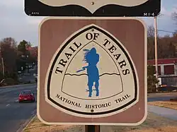 The Trail of Tears National Historic Trail is a 2,200-mile (3,500 km) long trail that follows the route of the forced westward migration of many American Indian tribes in the 1830s, including the entire Cherokee Nation. It is part of the National Trails System.