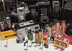 - Many odd sizes of roll film, where an 8, 12 or 20 exposure film with a paper backing is wound onto a spool. A specialised camera store will still have plenty of 120 (and maybe 220, a 24-exposure version of the same roll with the backing paper missing) but most of the others were discontinued by the 1990s. 620, 127, 828, 116, 616 & 122 spool film all differ in mechanical dimensions; short of dealing with specialised vendors like Film for Classics or Frugal Photographer, finding film for these cameras is problematic. It may be possible to load 120 film onto old 620 spools (which were the same format on a thinner spool) in complete darkness (with a darkroom or changing bag), but – unless the camera is just a nostalgia piece – it's likely not worth the trouble just for the novelty of dusting off a simple, low-end "point and click" box camera from 1950 to see if it still can be made to work.
