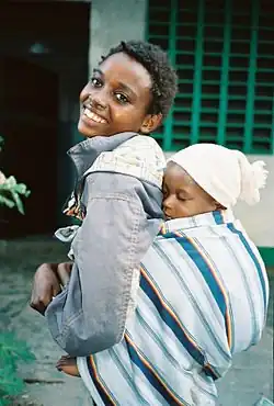 A baby sling can be a good alternative, especially if streets and roads are in bad shape. Some slings can be used to carry even quite big children (up to school age and more). If considering this, be sure both you and your child are used to the sling you choose before you leave home. Specialized backpacks are also available, mostly for quite big children.