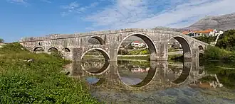 - 🌍 Arslanagića most (Perovića most) (From the old town cross the main bridge, then turn left and walk the path along the river). Built in the 16th century, this Ottoman bridge used to connect the road between Dubrovnik and Istanbul. In the 1960s it was moved 5 km brick-by-brick to Trebinje to prevent being demolished for the building of a dam. Bring some beers from the shop and enjoy the sun setting over the hills. Free.