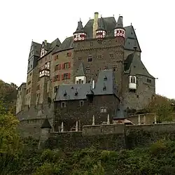 - 🌍 Eltz Castle (Burg Eltz) (Not very far as the crow flies North East from the town but nearly 20 km away by road.), ☏ +49 2672-950500. Daily 09:30-17:30, late Mar-Oct only. One of the most beautiful castles in a region packed with them, founded sometime before 1000 AD and still lived in by one of the three branches of the Eltz family. Access to the interior is by guided tour only, departing every 15 minutes in German and on demand in English. The ticket also includes entry to the treasure vault, showcasing medieval weaponry and a number of impressive pieces of golden artworks and jewelry. No photography allowed.