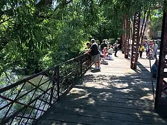 - 🌍 Grounds for Sculpture, 18 Fairgrounds Rd, Hamilton, ☏ +1 609 586-0616. Tu-Su 10AM-6PM. Outdoor art park in nearby Hamilton on the former site of the old Trenton Fairgrounds; some of the old buildings have been incorporated into the site housing galleries, sculpture studios, a gift shop, and cafe. Selected sculptures on display and botanical plantings change throughout the seasons, but don't miss the three-dimensional tableau of Henri Rousseau's "The Dream" hidden in a grove. The highlights of the 35-acre (14 hectares), beautifully landscaped park have paved paths and those in wheelchairs should have no problem getting around; some paths, however, are gravel or stepping stones, and should be navigated with care. Peacocks wander the grounds and beg to be fed a breadcrumb or two. Parking is abundant. Special tours for the blind, those in wheelchairs, small children, artists, and students are available. Picnicking is not allowed inside the park. $20, $10 for students/children, and $15 for seniors, military/veterans, and healthcare workers.