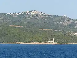 Trikeri is built on top of the hill at the end of the peninsula of Magnesia, east of the entrance of Pagasitikos Bay. It is a short distance from the sea and is served by the port of Agia Kyriaki, just below the settlement. Due to the easier access from the sea than from the mountainous and steep hinterland, it acquired the character of an island and particularly developed shipping. Until the 1970s, Trikeri did not have access by land and communication was done exclusively by sea, from the opposite coast of Magnesia.
