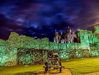 - 🌍 Trim Castle, Castle St, Trim C15 HN90, ☏ +353 46 943 8619. Daily 10AM-5PM. Substantial remains of a large Norman castle, built from 1174 by Hugh de Lacy, smashed up the moment his back was turned by Irish king Rory O'Connor, then rebuilt to 1224. It was captured but only slightly damaged in later upheavals, so it's well-preserved and makes a great movie location: in Braveheart it was used for York Castle. There's a long curtain wall on three sides, with the river protecting the other side; there's also a moat ditch and various barbicans and sally-ports. The sturdy 3-storey keep, unusually, is cruciform. It contained two great halls but is nowadays hollow. In 1465 King Edward IV made it a capital offence not only to rob, but to be going to rob at some unspecified time in the future, so the ten beheaded men found buried by the keep in 1971 were either thieves or a time-loop contradiction. Adult €5, conc €4, child €3.