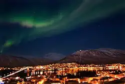 Tromsø (Northern Sámi: Romsa, Kven and Finnish: Tromssa) is a city of around 78,000 people (2023) in the very northernmost part of Norway. It is almost 350 km north of the Arctic Circle and is one of the best places to view the spectacular Northern Lights in winter. Tromsø is a surprise to most visitors: Here you find art, history, sophistication, good food and infamous nightlife in a bustling, tiny city. All of it, though, is surrounded by spectacular scenery that is visible from everywhere in town.
