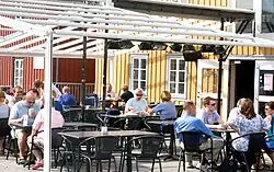 - Skarven, Strandtorget 1, ☏ +47 77-60-07-20. Daily from 11:00. Another long-timer. Serves good food, including loads of fish (an welcome respite from the feta cheese and olive fare of the other cafés), and loads of beer way into the night in a 1920s margarine factory. The crowd is grown-up and well-heeled, but just as loud as the rest.
