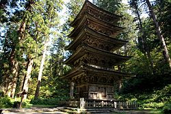 - 🌍 Zenpoji Temple (善宝寺), 下川字関根100 (a 20-minute drive from Tsuruoka Station; it's just west of Highway 38, 2.7 km north of the Highway 112 junction). This temple, founded in the 1200s, is known for its five-storied pagoda. There are several other temple buildings, too.