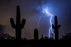 Summer has daytime high temperatures between 98 and 102 °F (37 and 39 °C) and low temperatures between 71 and 77 °F (22 and 25 °C). Average summer heat indices range between 97 °F (36 °C) during the day and 77 °F (25 °C) at night, though it's not unheard of to have heat indices to climb upwards to 110 °F (43 °C) and not go below 85 °F (29 °C) at night. Early summer is dry: low humidity and clear skies. By mid-summer the monsoons start, bringing higher humidity, cloudy skies, and frequent thunderstorms. The monsoon season officially starts on June 15, but the actual arrival of storms varies from year to year. Storms usually are scattered, with intense rainfall, thunder and lightning in one part of town, and completely storm-free elsewhere, then changing in a few hours. Flash floods are possible. Large areas of the city do not have storm sewers (the street becomes the storm sewer), flooding main thoroughfares. A few underpasses have "feet of water" scales to discourage motorists from driving through in a rainstorm. (See "Stay safe" section for more information).