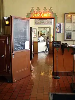 - 🌍 Cup Cafe, 311 E Congress St (in the Hotel Congress), ☏ +1 520-798-1618. Daily 7AM-10PM. Unusual, eclectic mix of Indian, Thai, Japanese, American and Mediterranean food, easily the most interesting restaurant in Tucson. You'll find plenty of vegetarian and some vegan options. On a nice day you can sit outside.