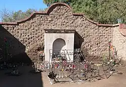 - 🌍 El Tiradito (The Castaway), Just south of the intersection of S Main Ave at W Cushing St (Barrio Viejo). El Tiradito is the only shrine to a sinner in North America. In the 1880s, a young man had an affair with his mother-in-law. When caught in the act, his father-in-law shot him and he stumbled from bed and ran out of the house. He dropped dead on this spot, and because he had not confessed his sins, he could not be buried in the church yard. His family and friends interred him where he fell, but remembered him with candles and flowers. People still burn candles and leave offerings today. Best visited at dusk or after dark.